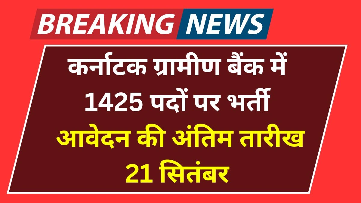 Karnataka Gramin Bank Recruitment: कर्नाटक ग्रामीण बैंक (KGB) ने अपने विभिन्न विभागों में 1425 पदों पर भर्ती का नोटिफिकेशन जारी किया है। इस भर्ती के तहत बैंक ने ऑफिस असिस्टेंट (क्लर्क), असिस्टेंट मैनेजर (ऑफिसर स्केल-I) और मैनेजर (ऑफिसर स्केल-II) के लिए योग्य उम्मीदवारों से आवेदन आमंत्रित किए हैं। उम्मीदवारों को सलाह दी जाती है कि वे 21 सितंबर 2025 तक आवेदन प्रक्रिया पूरी कर लें, क्योंकि इसके बाद आवेदन स्वीकार नहीं किए जाएंगे। इच्छुक उम्मीदवार बैंक की आधिकारिक वेबसाइट पर जाकर ऑनलाइन आवेदन कर सकते हैं।