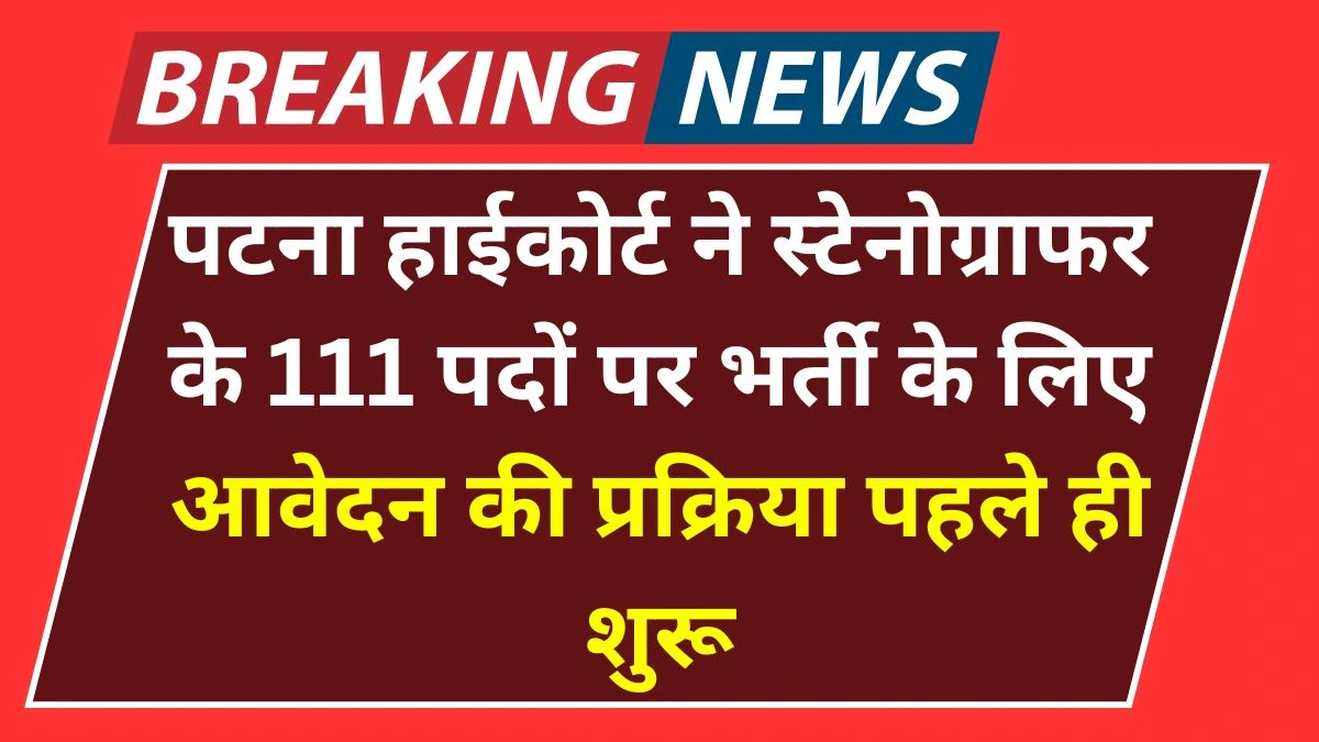 Patna High Court Stenographer Recruitment: पटना हाईकोर्ट ने स्टेनोग्राफर के 111 पदों पर भर्ती के लिए आवेदन की प्रक्रिया पहले ही शुरू कर दी थी और अब इसकी अंतिम तिथि आ गई है। इच्छुक और योग्य उम्मीदवारों के पास आज आवेदन करने का आखिरी अवसर है। उम्मीदवार आधिकारिक वेबसाइट पर जाकर ऑनलाइन आवेदन कर सकते हैं। साथ ही आवेदन शुल्क जमा करने की अंतिम तिथि भी 21 सितंबर तय की गई है। जो उम्मीदवार बिहार न्यायपालिका में करियर बनाने का सपना देख रहे हैं, उनके लिए यह एक सुनहरा अवसर है।