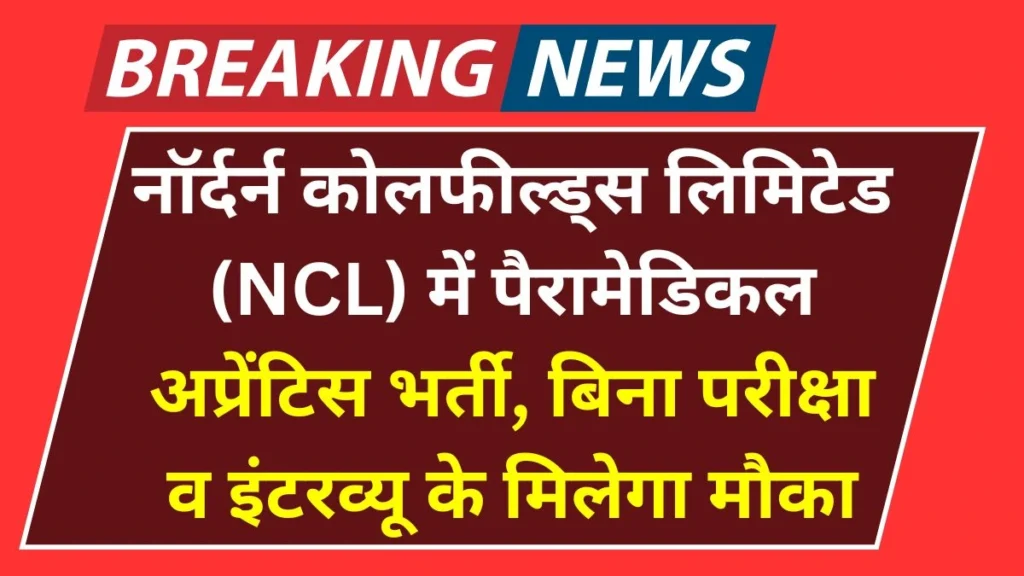 NCL Recruitment 2025: नॉर्दर्न कोलफील्ड्स लिमिटेड (Northern Coalfields Limited – NCL) ने पैरामेडिकल अप्रेंटिस ट्रेनी के 100 पदों पर भर्ती