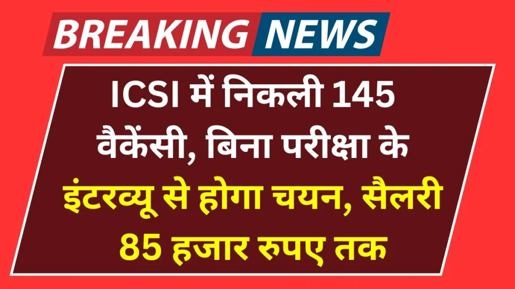 ICSI Recruitment 2025: सरकारी नौकरी की तलाश कर रहे युवाओं के लिए एक बेहतरीन मौका सामने आया है। इंस्टीट्यूट ऑफ