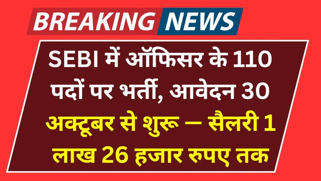 SEBI Recruitment 2025: नौकरी की तलाश कर रहे युवाओं के लिए बड़ी खुशखबरी है। भारतीय प्रतिभूति और विनिमय बोर्ड (SEBI)